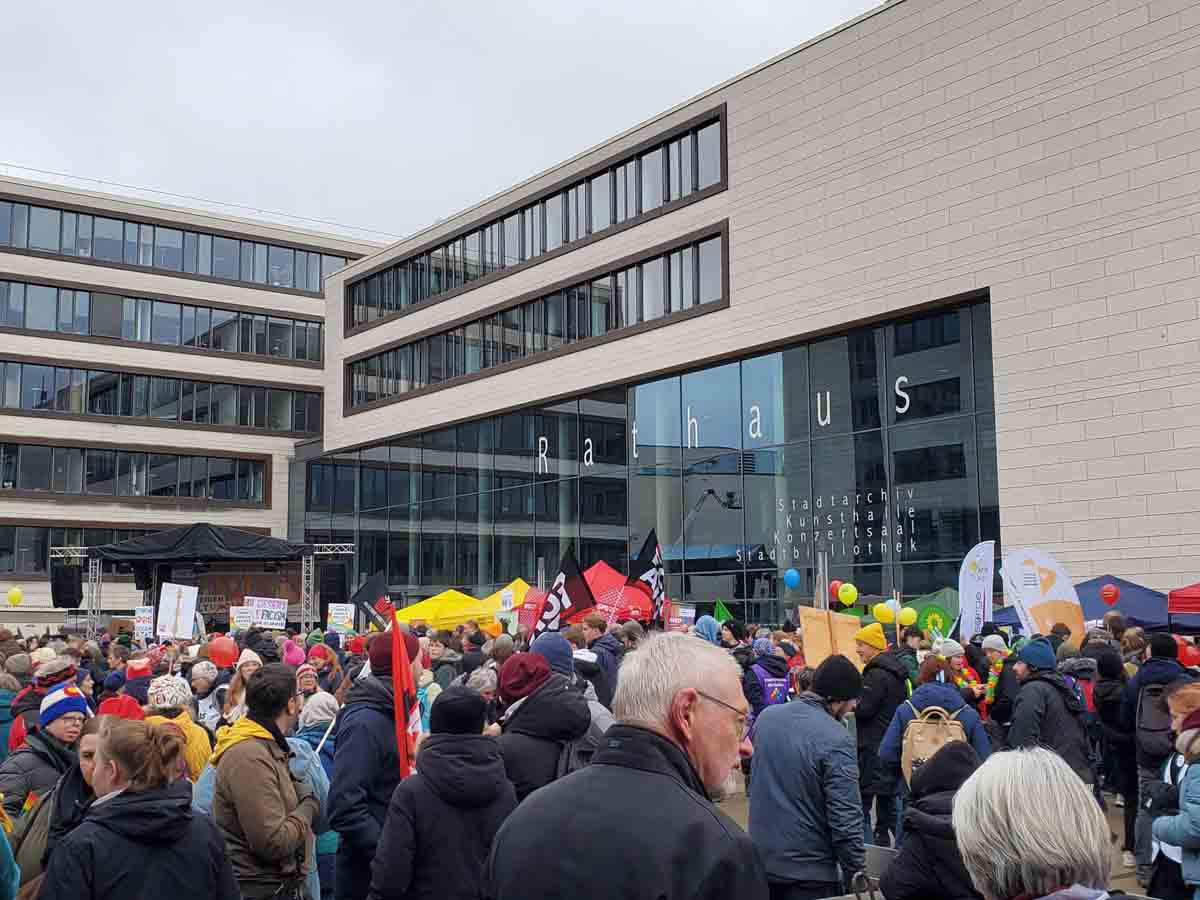 Einerseits kam es (verzögert) zur erneuten Gründung der Jugendorganisation der AfD, andererseits – und das ist wesentlich erfreulicher – demonstrierten Zehntausende kritisch eingestellter Mitbürger friedlich gegen diese Neugründung. Die Innenstadt von Gießen war praktisch autofrei und die Demonstranten versammelten sich zahlreich vor den verschiedenen Bühnen und Sammelpunkten.