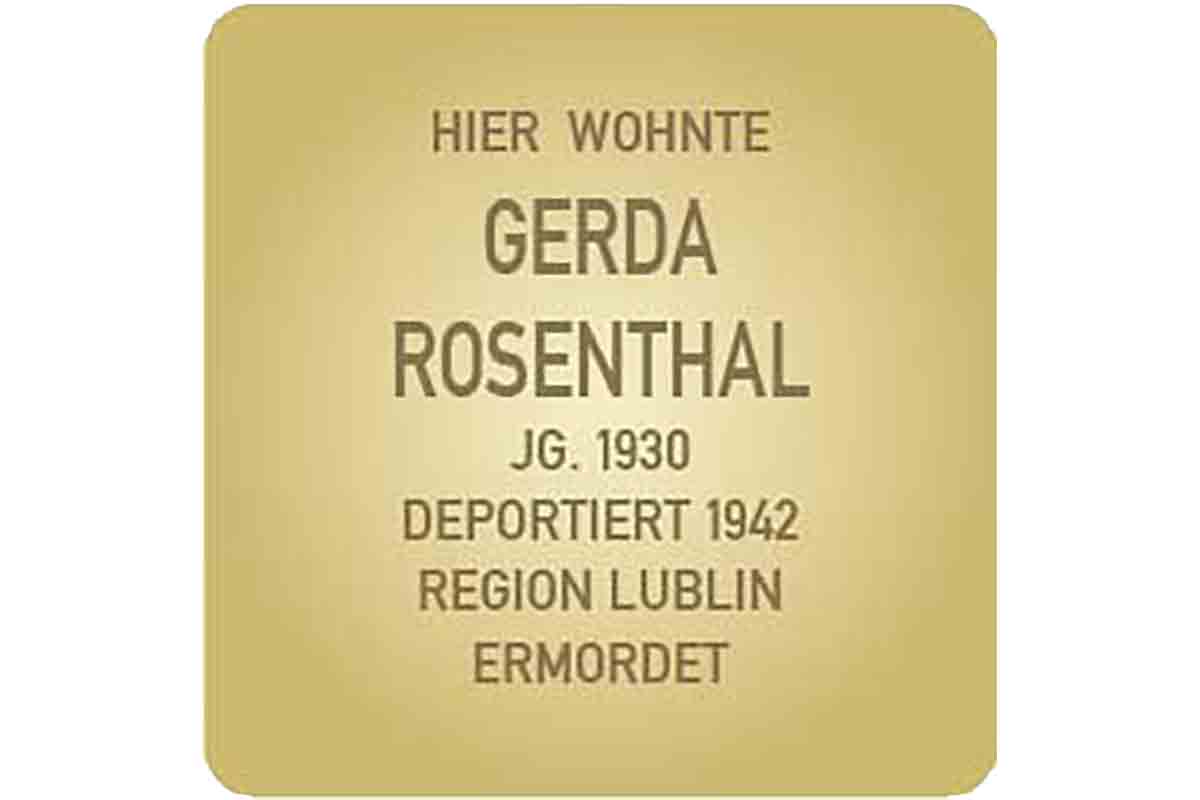 - Gerda Rosenthal wurde am 17.01.1930 geboren. Ihre Eltern waren Bernhard und Minna Rosenthal. Sie wohnte mit ihnen in der Bannstraße 14.